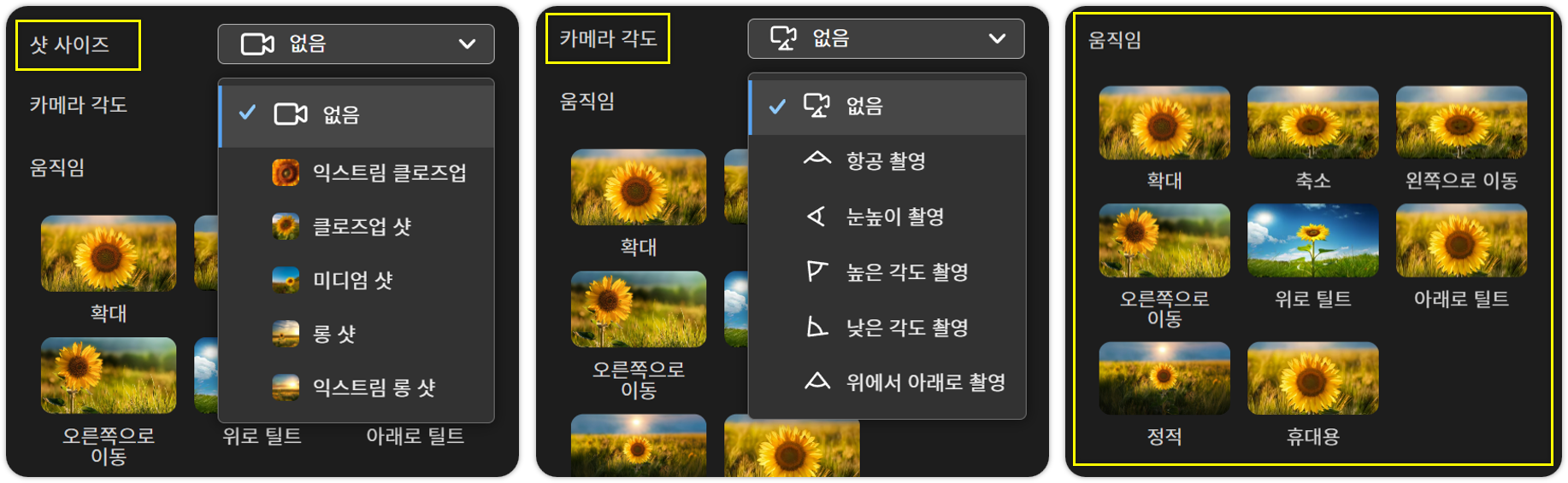 카메라 모션과 앵글 조절