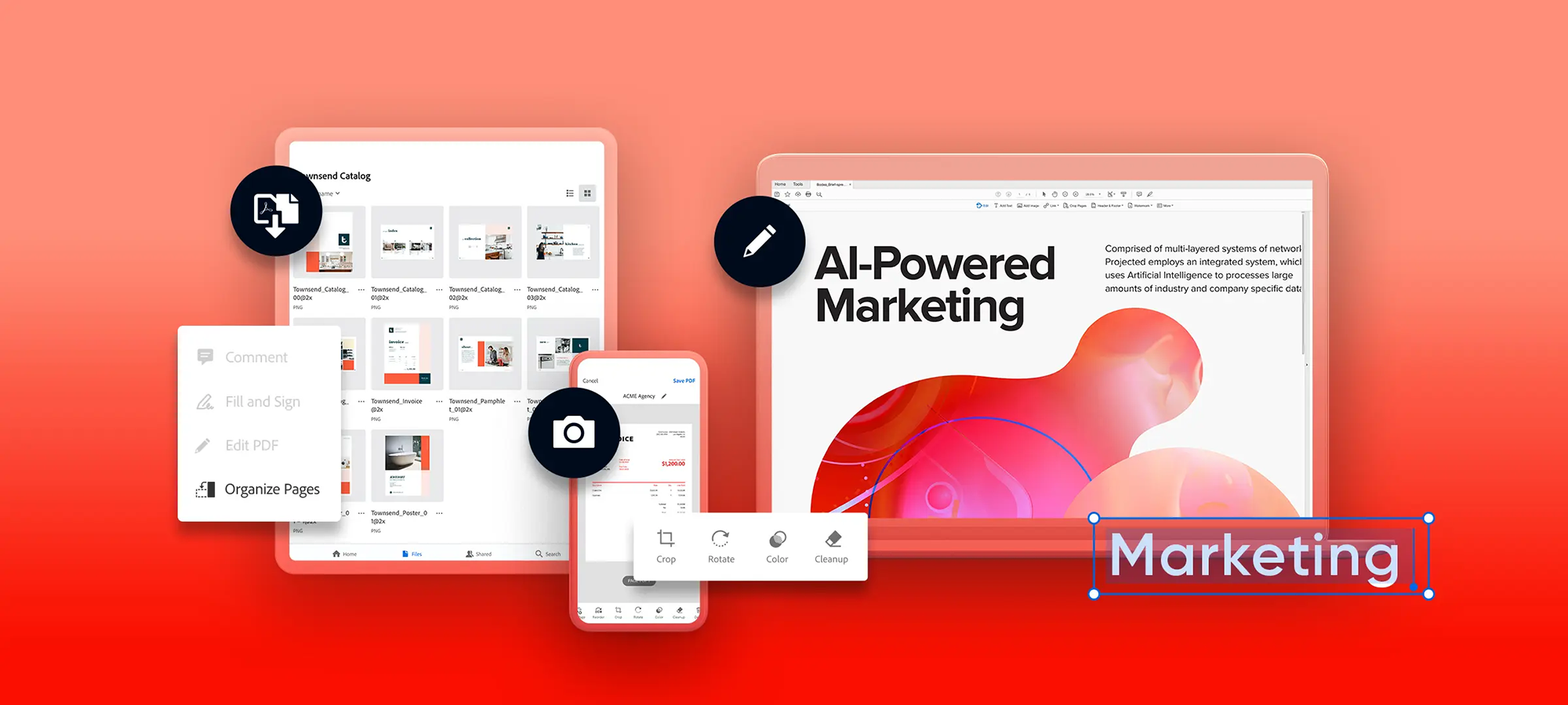애크로뱃 온라인은 모바일 브라우저에서도 접속할 수 있어 스마트폰이나 태블릿에서 간편하게 작업할 수 있습니다. 또한 Acrobat Reader 모바일 앱을 설치하면 더 최적화된 환경에서 PDF를 보고 PDF 변환하거나 편집할 수 있죠. 이동 중에도 Document Cloud에 저장된 파일에 언제든 접근할 수 있어 장소에 구애받지 않고 업무를 처리할 수 있습니다.
