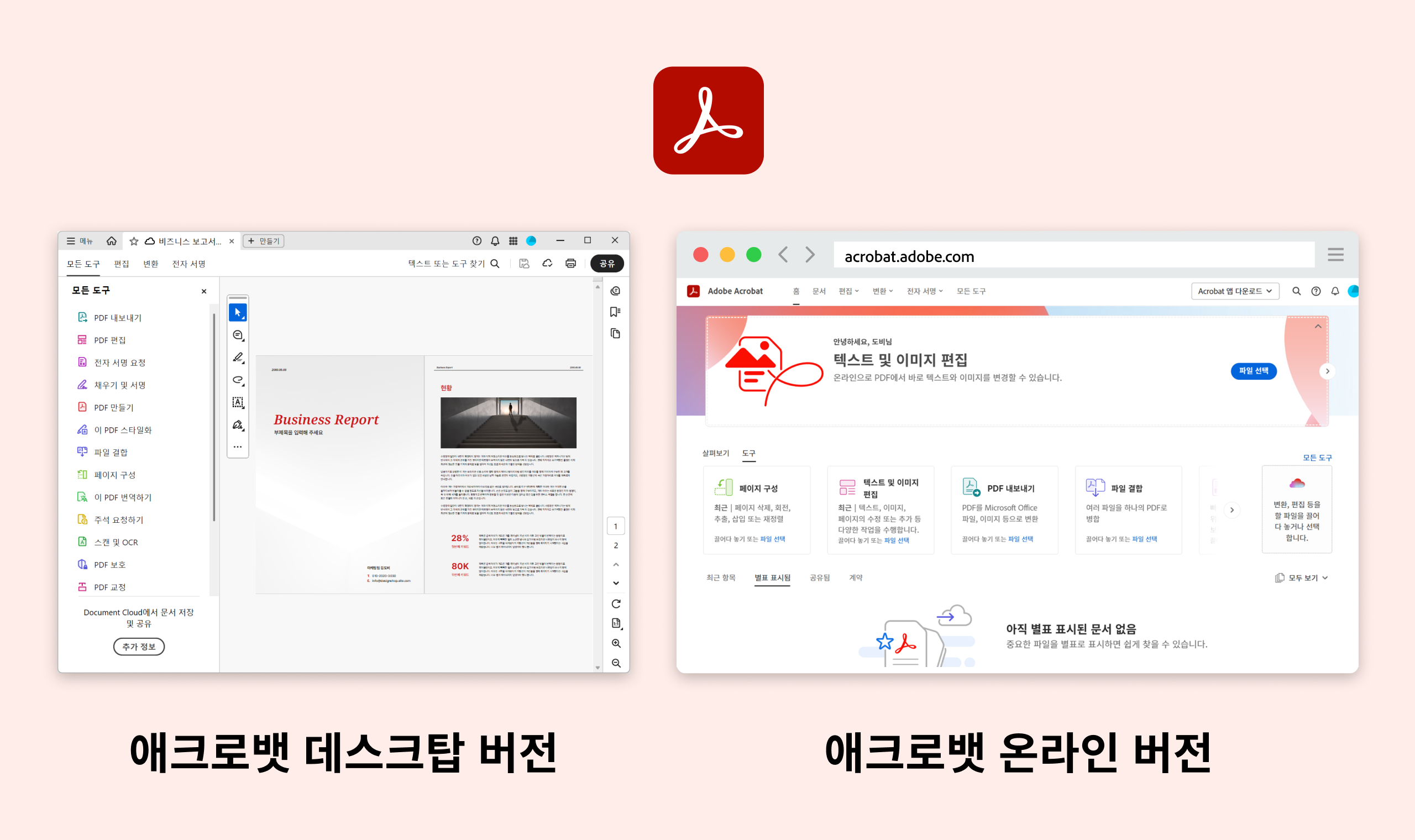 1. 애크로뱃 온라인 버전과 데스크탑 버전은 어떻게 다른가요?