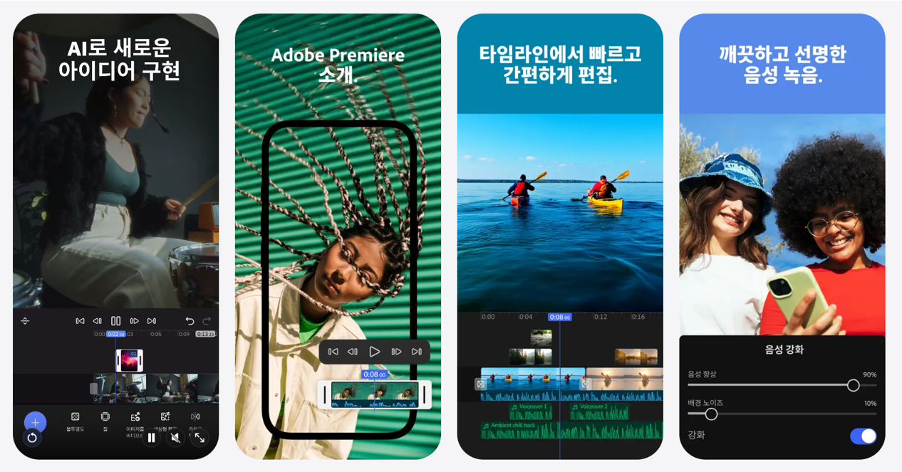 프리미어 모바일 앱을 활용하면 무료 영상 편집으로도 인상적인 콘텐츠를 쉽고 빠르게 완성할 수 있습니다. AI가 지원하는 음성 향상과 사운드 효과 생성 기능으로 기술적 한계를 넘어서고, 생성형 AI로 창의적인 애셋을 즉석에서 만들어낼 수 있죠.